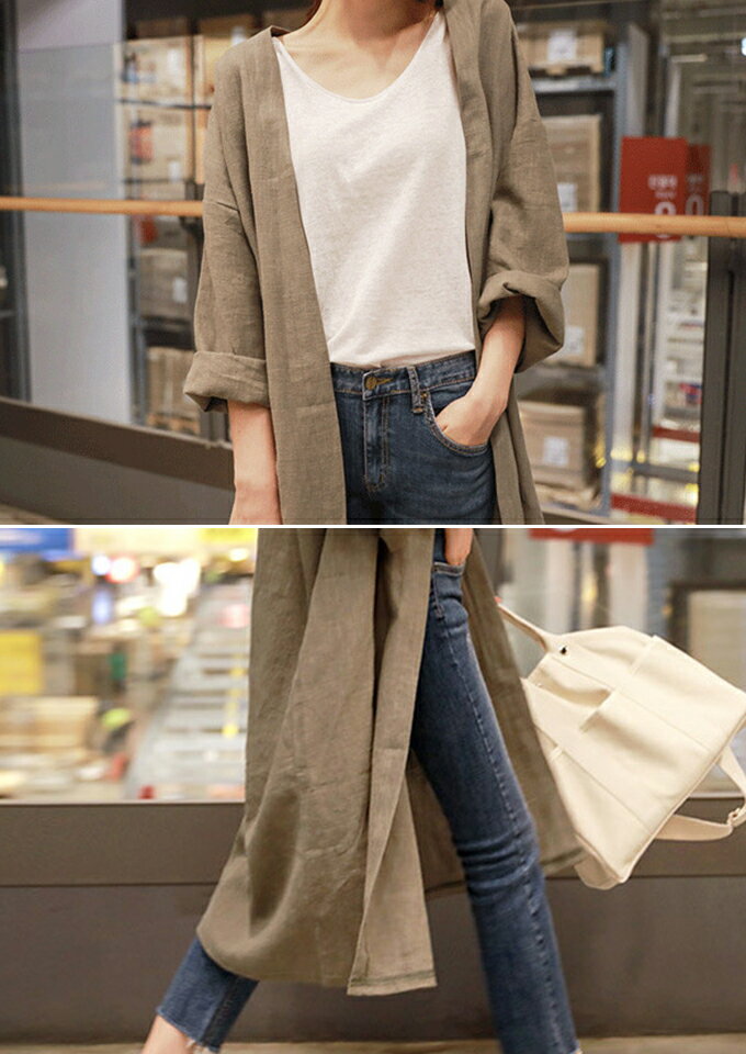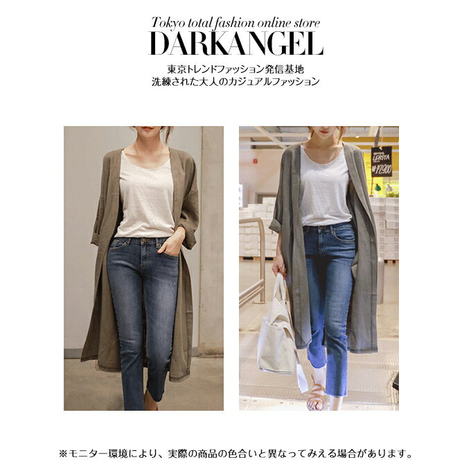 ■素材 綿90%ポリエステル10% ■仕様 ノーカラー フロントボタン等なし ロング丈 ■シーズン 春 夏 秋口 フロント 裾 発送方法 ネコポス発送 ■Size (単位:cm) SサイズMサイズLサイズXXLサイズ 肩幅 59 62 65 68 バスト 114 120 128 134 裾周り 116 118 122 126 袖丈 34 35 36 37 袖幅 38 40 42 44 着丈 106 107 108 109 ■Spec 素材 綿90%ポリエステル10% 伸縮性 なし 透け感 なし 裏地 なし 生産国中国 ■注意事項 こちらの製品は引っかかりやすい性質を持っております。