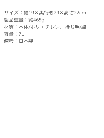 サイズ:幅19×奥行き29×高さ22cm 製品重量:約465g 材質:本体/ポリエチレン、持ち手/綿 容量:7L 備考:日本製 カテゴリー:バスケット/カゴ/かご/バケット/小物収納/小物入れ/スタッキング/マリンテイスト/ナチュラル/カラフル/シンプル/モダン/北欧/ホワイト/ブラウン/ブルー/レッド/ピンク/カフェオレ/ブラック/グリーントップ > 収納ボックス・ケース > balcolore(バルコロール) Sサイズ サイズ:幅19×奥行き29×高さ22cm製品重量:約465g材質:本体/ポリエチレン、持ち手/綿容量:7L備考:日本製