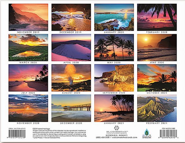 別途 地域別送料がかかります毎年大好評のアイランドヘリテイジのハワイアンカレンダーです! 夕陽に照らされたハワイの景色が、どこか懐かしく落ち着くフォトカレンダー♪