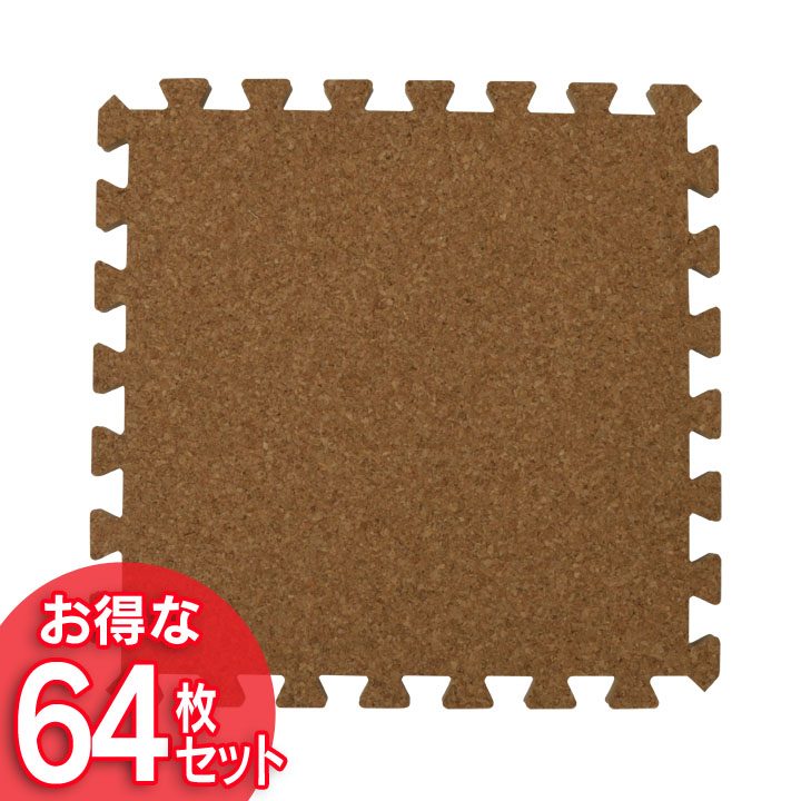 ジョイントマット プレイマット コルクマット 45cm 64枚セット 8畳用 天然素材 自然素材 安全 シンプル 赤ちゃん 子ども 大きさ自由 敷き物 クッション